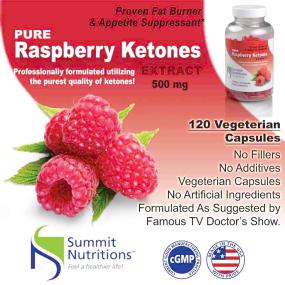 View larger Key Features Maximizes Body Energy – enzyme lipases help breakdown fat cells, turning fat to fuel promoting increased energy levels.Burns Body Fat – by metabolism and lipolysis (breakdown of fat).Promotes Appetite Suppression – causes the body to release more of a hormone Leptin. Leptin is one of the appetite hormones in your body that, when producing more, will help you feel full.Pure Natural Raspberry Ketones Extract – a safe, natural compound found in raspberries. Not synthesized in a laboratory.Comes in 500 mg Capsules – 120 Capsules per bottle. Manufactured in the USA in USFDA, cGMP Certified Manufactured Facility.